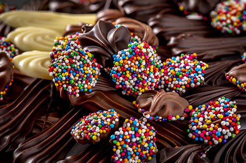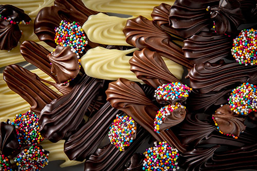 Chocolate is just fun to shoot. We setup a portable photo studio on site at their shop/production facility. Remote shoots are an option that we considered but in this case it’s easier to be close to the production and it’s more efficient working in-person vs. over email or text. Chocolate production can be a messy business and working onsite we often have to clean red orange goo off the camera equipment. But it’s so worth it for the beautiful artwork that we create together.
